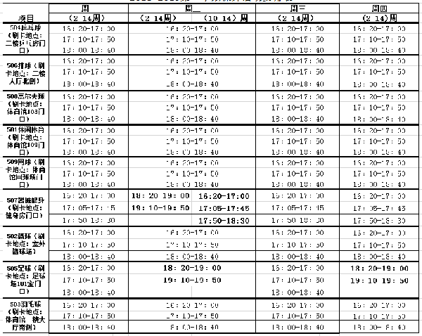 2018-2019学年第一学期浦东校区课外活动安排