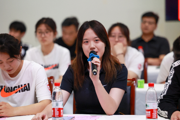 在党课互动交流环节,市体育局团委书记崔燕,各运动队教练员、运动员代表,校发展规划处陈志成、金融科技学院凌慧义、体育与健康学院黄敏交流了学习心得。