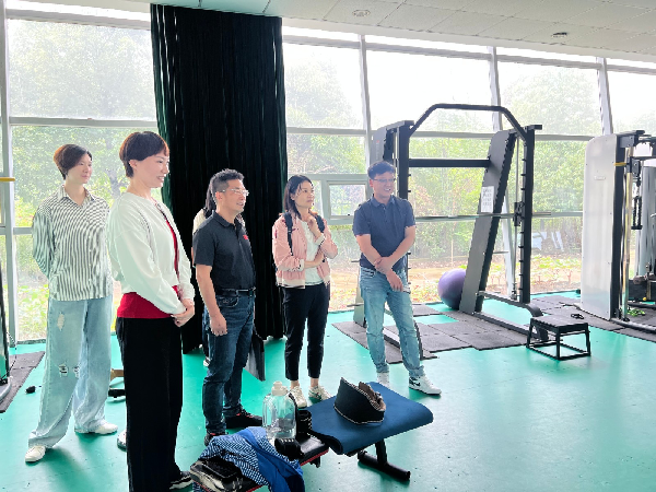 次日,调研团队到访南京体育学院运动训练学院。在交流中,秦曼介绍了我校体育工作的现状、体教融合工作举措以及“市队校办”模式的建设情况和取得的成效。南京体育学院运动训练学院竞技系副主任杜韫洁老师则分享了体育课程思政建设、运动员选调与管理的经验,重点介绍了击剑运动项目在教育教学和训练竞赛方面的创新和成果,并陪同调研团队实地考察了体育馆、训练房及相关教学场所。