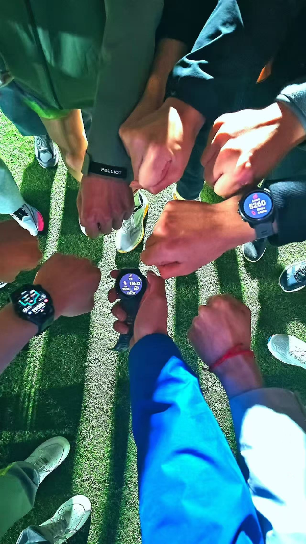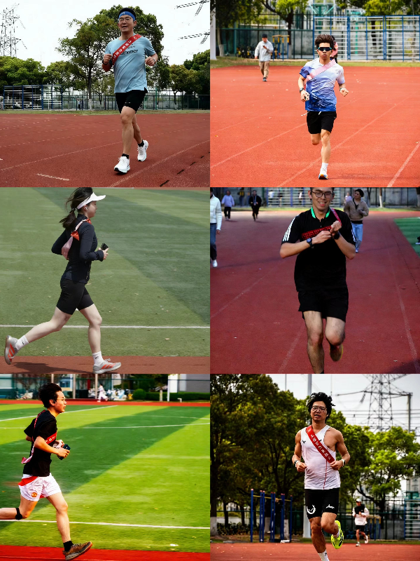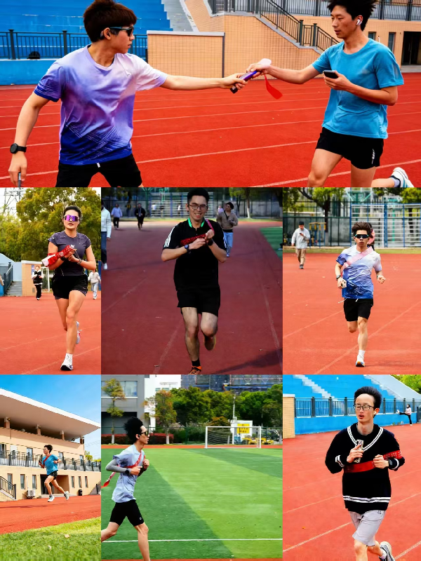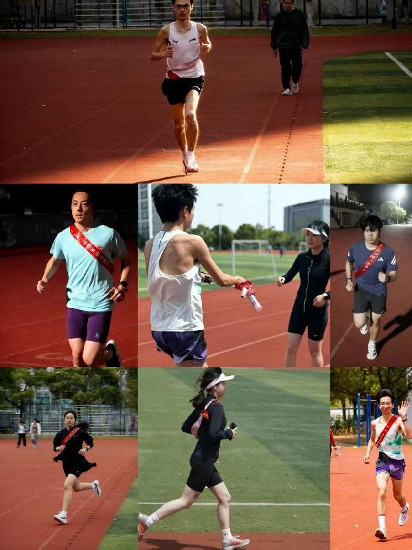 下午时分,田径场上阳光正好,气氛热烈。随着第一棒选手迈步起跑,百公里接力活动正式拉开帷幕。20位成员依次上阵,每人完成5公里的接力赛段。跑道上,有人步伐矫健、一马当先;有人调整节奏、稳扎稳打;有人在交接区为队友递水鼓劲,有人刚完成赛段便转身为下一棒呐喊助威。从日头高悬到暮色渐浓,田径场上始终洋溢着团结拼搏的热烈氛围。