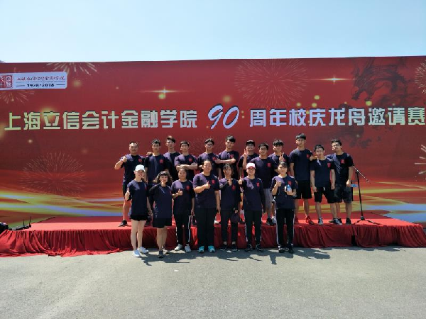 为庆祝上海立信会计金融学院建校九十周年,增进本市高校间师生交流互动,我校于6月15日,举办“2018年上海立信会计金融学院90周年校庆龙舟邀请赛”。上海市大学生体育协会会长薛明扬、我校校长唐海燕、副校长赵荣善、校长办公室、校庆办公室主任崔亦田、上海市大学生体育协会秘书长盛炯、副秘书长顾承锷出席开幕式,我校体育与健康学院党总支书记尹晓春主持开幕式。热闹的舞狮表演过后,薛明扬会长、唐海燕校长共同为龙舟点睛,经过点睛的龙舟在骄阳下神采飞扬、熠熠生辉。