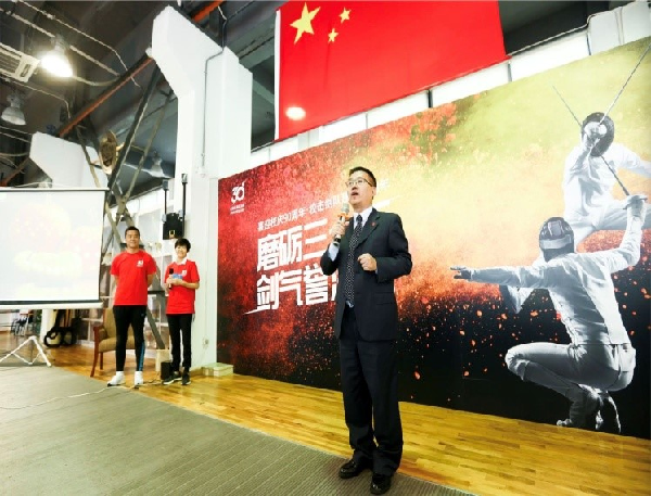 在采访李兴林老师环节中,李老师与大家分享了他是如何实现自己梦想的故事。在他大学毕业时候,他立志要到基层把击剑这项运动传播下去。他率先引入体教结合理念并付诸实践,积极探索小学、中学、大学一条龙的教育模式。执教多年来,李老师一直以教书育人为己任,注重团队协作,培养学生学习能力、创新能力、动手能力、人际交往能力,培养学生要有自律精神,时刻保持阳光心态。30多年来,在李老师坚持不懈地努力下,击剑队取得了傲人的成绩,培养出许多优秀人才,有银行、保险公司的负责人、世界500强企业的高级管理人员、还有活跃在各个击剑馆内教授击剑的教练们。让击剑运动的精神成为更多青年的梦想,让击剑这项高雅的运动让时下年轻人领悟到一种战斗精神,一种坚信自己有能力创造奇迹,一种宽容的精神。