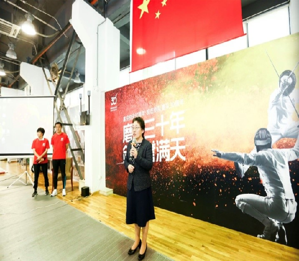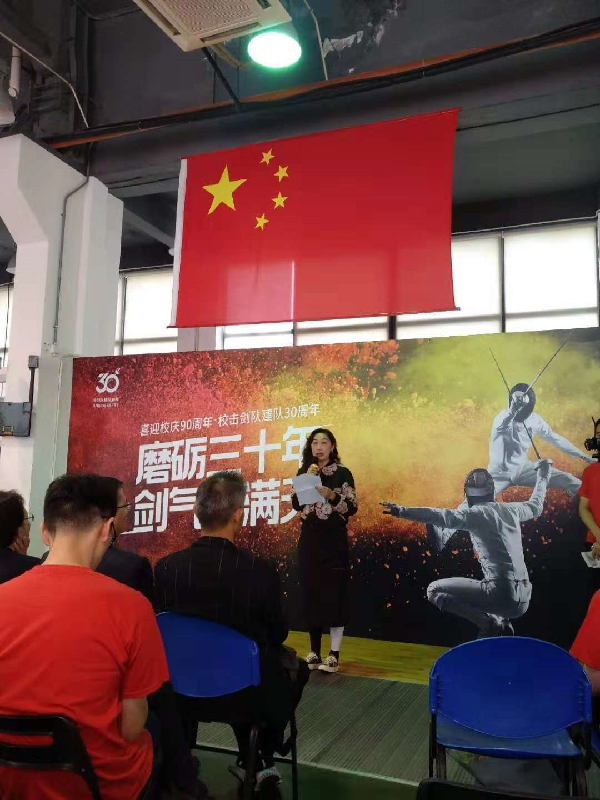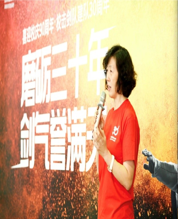 随后原上海金融学院党委书记郑沈芳老师,回顾了她亲自见证击剑队如何在李兴林老师带领下从30多年前的零基础到逐渐成长并取得辉煌成就的历程。她说“办学校就要有特色。什么叫特色?李兴林老师和他的击剑队就是有特色,都是特别与众不同的。”